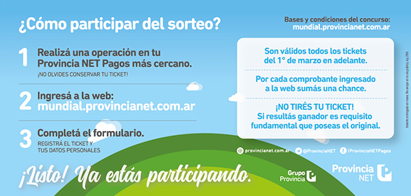 Señor Asociado: Adjuntamos detalles de la promoción lanzada por "Provincia NET", para quienes abonan sus servicios a través del sistema de cobros de dicha empresa en sus bocas habilitadas, entre las que se encuentra nuestra Cámara.